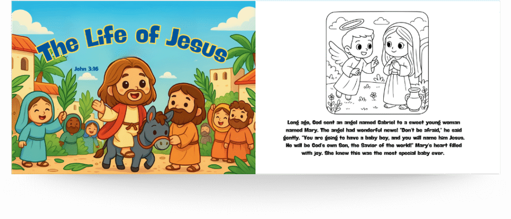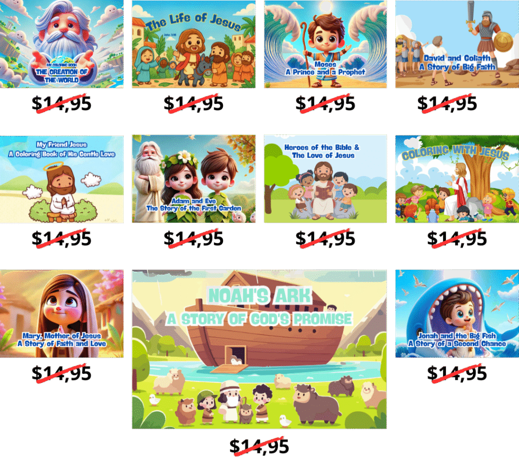 That’s why I created this special e-book offer! Download instantly, print at home, and hand them to your child to start reading and coloring right away – no waiting, no worries, just faith-filled fun.